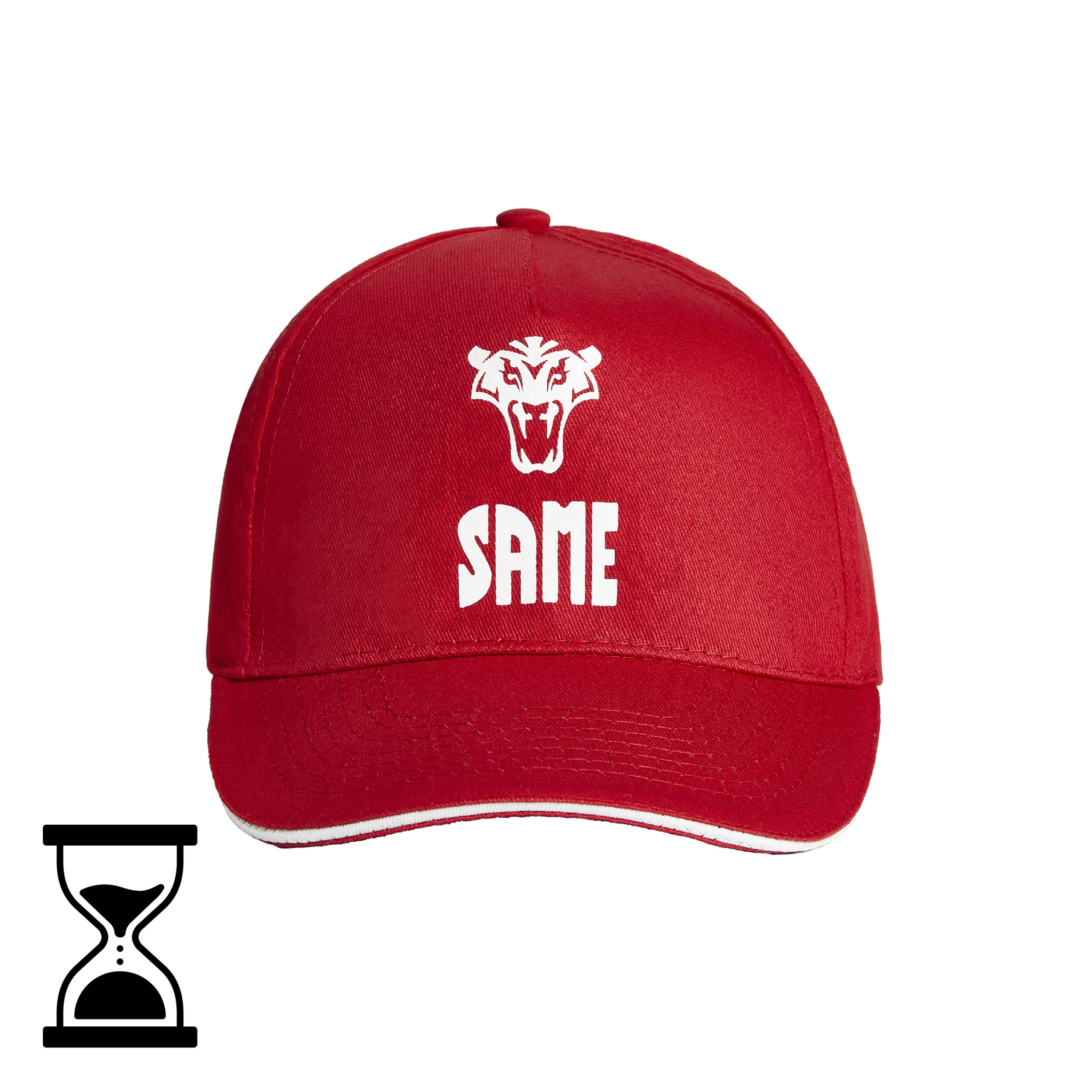 Casquette à 5 panneaux avec visière incurvée, bandeau de transpiration en coton et œillets brodés sur la couronne. La fermeture arrière par bande velcro permet un ajustement personnalisé. Le logo SAME imprimé sur la face avant fait de cet accessoire un classique pour les amateurs de tracteurs SAME.