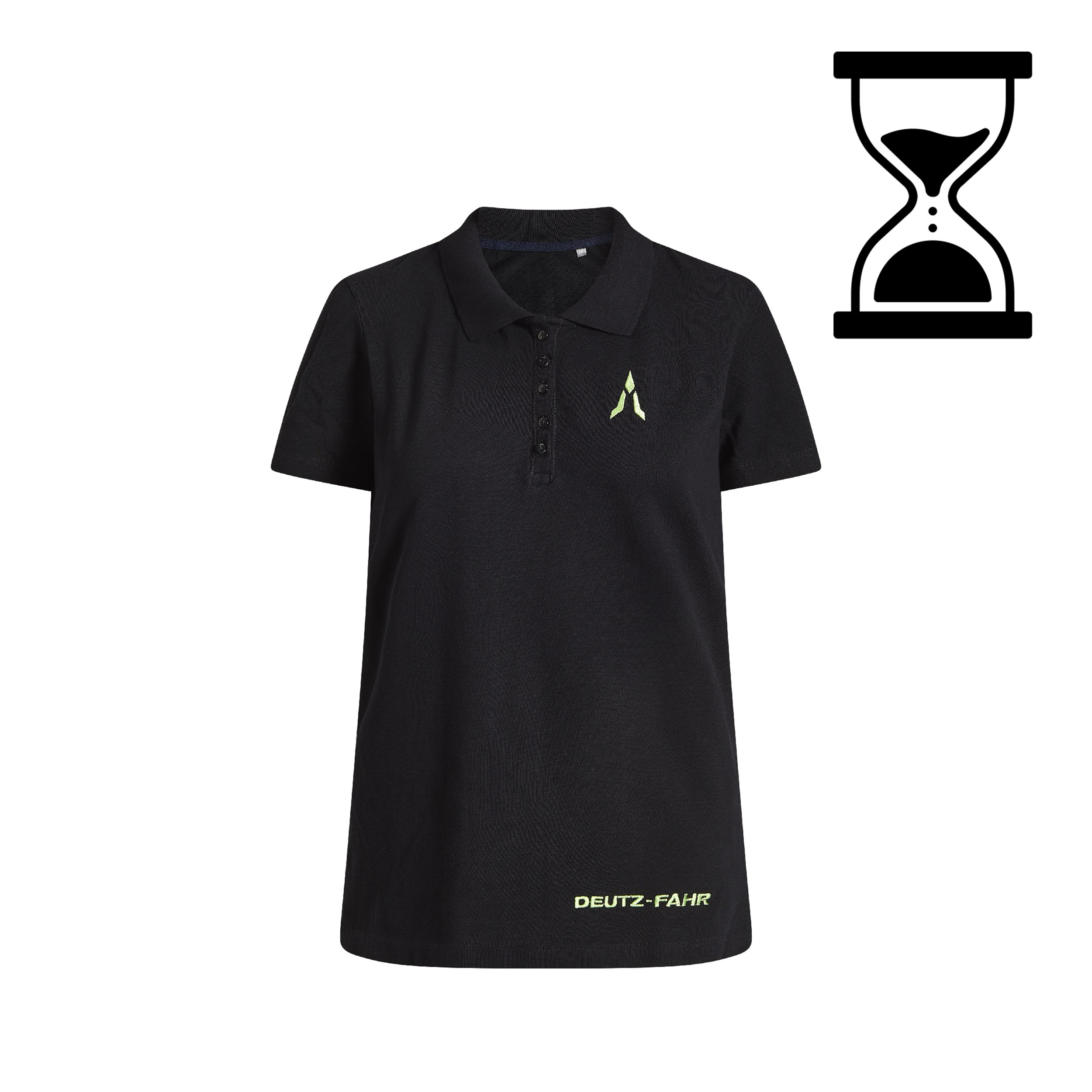 Le polo noir à manches courtes pour femme DEUTZ-FAHR est fabriqué en 100 % coton filé à l'anneau, piqué, ce qui le rend doux et confortable. Doté d'un col côtelé, ce polo se ferme par cinq boutons ton sur ton et possède une bande intérieure de couleur contrastée. La finition des coutures latérales garantit un ajustement parfait. Le logo est brodé sur le côté du cœur et l'inscription DEUTZ-FAHR est brodée sur le bord inférieur.