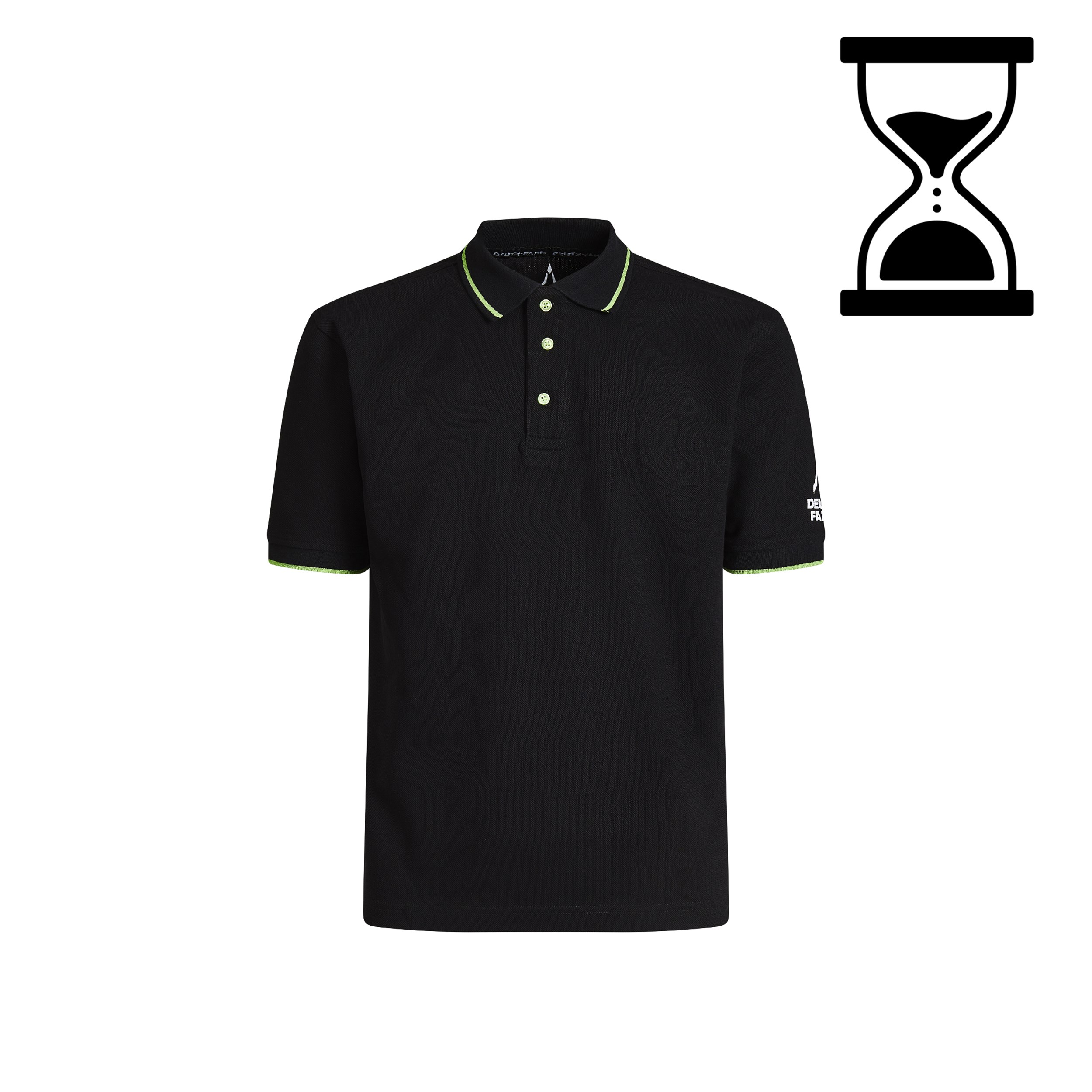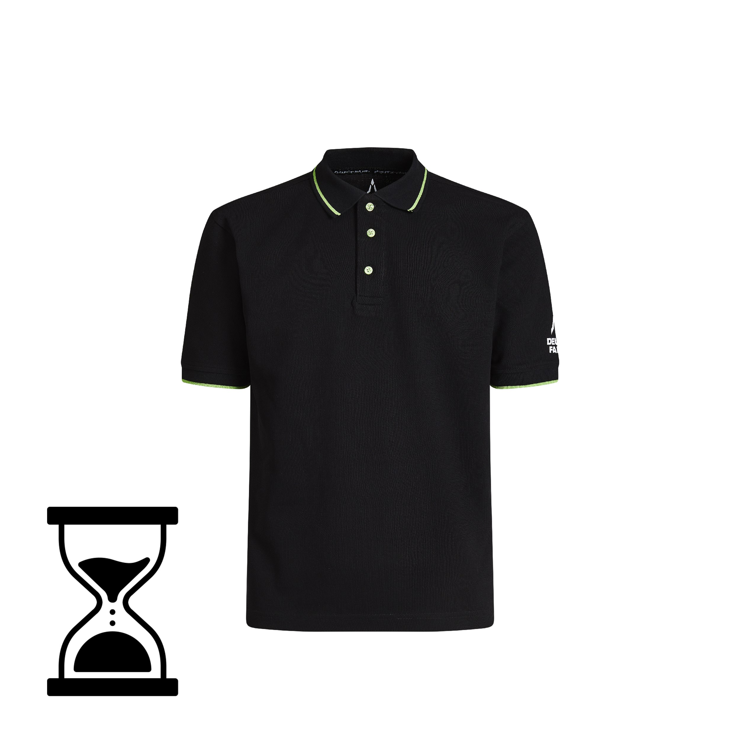 Le polo noir à manches courtes pour hommes de DEUTZ-FAHR en 100 % coton piqué est à la fois élégant et décontracté. Le col et les manches sont ornés d'une ligne verte contrastée qui ajoute une touche d'originalité. Les boutons, également de couleur contrastée, confèrent un aspect distinctif. La personnalisation de la marque se trouve sur la manche gauche et sur le tour de cou. La combinaison de ces éléments fait de ce vêtement une option polyvalente et élégante.