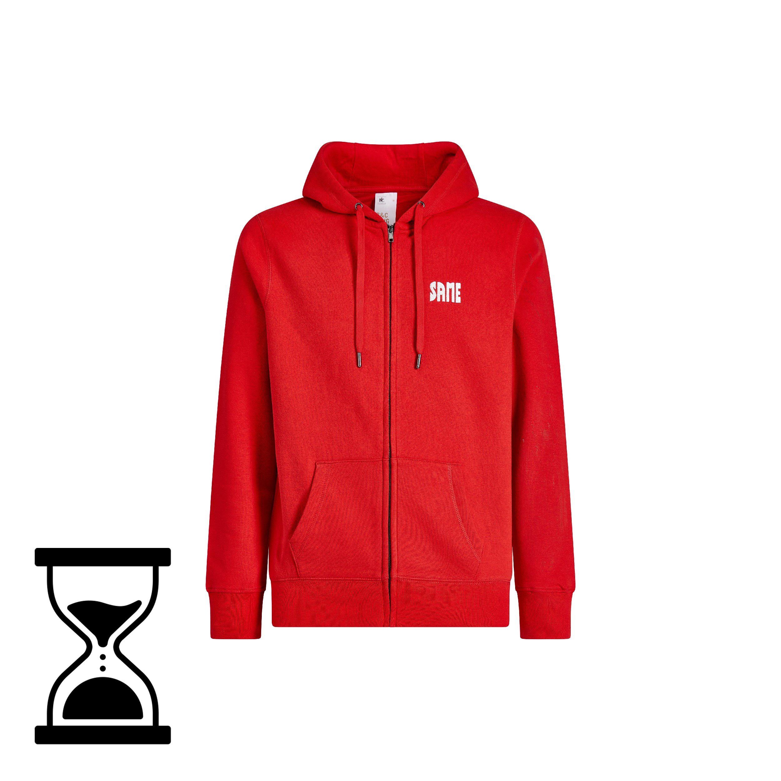 Le sweat-shirt rouge SAME pour femme, avec le logo blanc brodé sur la poitrine, est fabriqué dans des matériaux de haute qualité : 80 % de coton filé à l'anneau peigné et 20 % de polyester, pour garantir confort et durabilité. La capuche doublée de jersey, la fermeture éclair centrale et les cordons plats avec d'élégants embouts métalliques sont ses caractéristiques distinctives. Les coutures latérales renforcées et le bandeau de transpiration rendent la structure plus robuste.