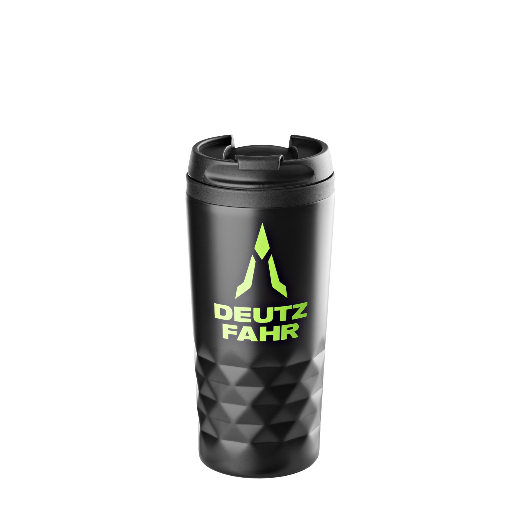 Verre DEUTZ-FAHR en acier inoxydable de 300 ml avec intérieur en plastique. Il ne va pas au lave-vaisselle. Il conserve la chaleur pendant 3 heures et le froid pendant 6 heures. Il est fournie en paquet-cadeau.